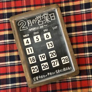 営業予定日は予告なく変更する場合があります。当日朝にご案内しますので、ご来店の際はTwitter(現X)かInstagramを必ずご確認の上、ご来店をお願いします。